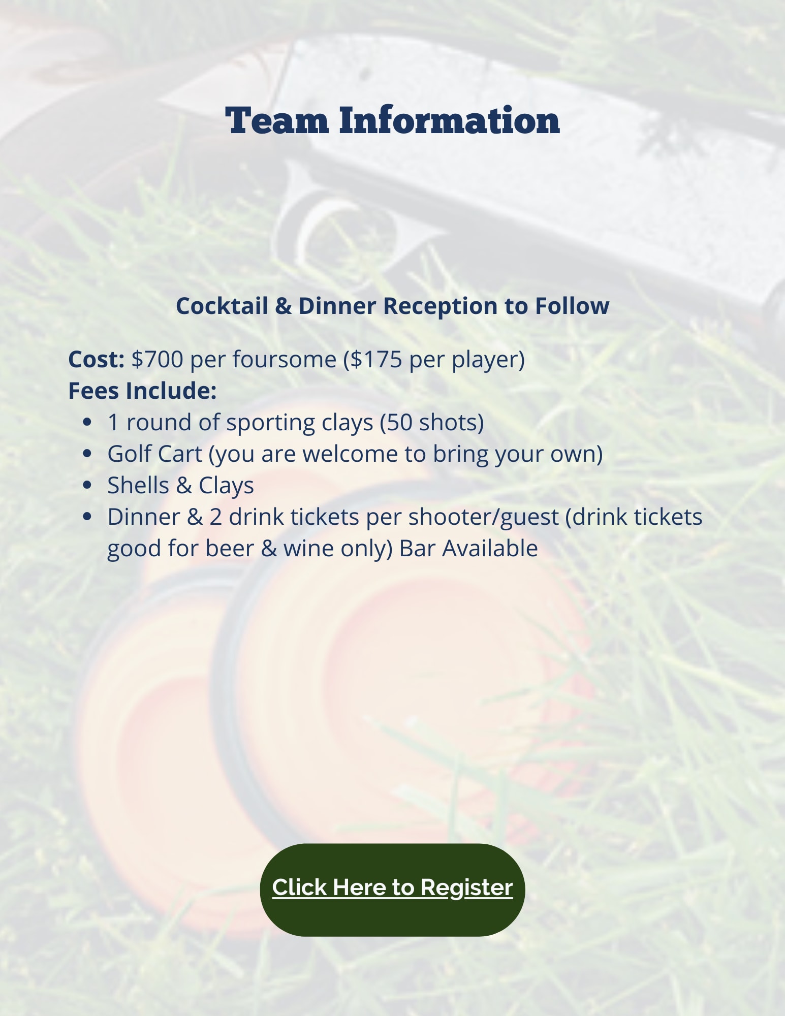 Registration: 1:00pm Shotgun Start: 2:00pm Cost: $700 per foursome