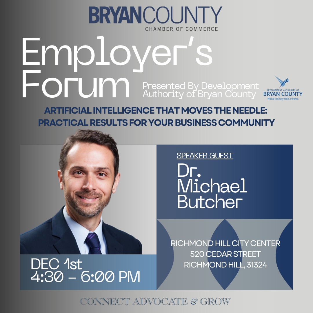 Businesses and organizations thrive on relationships, responsiveness, and reliability. This session shows how AI strengthens what already makes this region competitive: faster service, sharper communication, and smoother operations. Dr. Butcher will share how leaders turn everyday communications such as emails, proposals, and inquiries into smarter decisions and streamlined workflows with AI tools, while protecting your brand, data, and customer trust. He will also highlight advanced AI automated agents and chatbots. Dr. Butcher will cover ways to extend team capacity with AI through quick-start guides, automated handoffs, and cross-training so work continues during staffing gaps. He will also show how AI can boost job satisfaction and reduce turnover. You’ll leave with practical examples, tools you can use immediately, and a roadmap for effective AI adoption.
